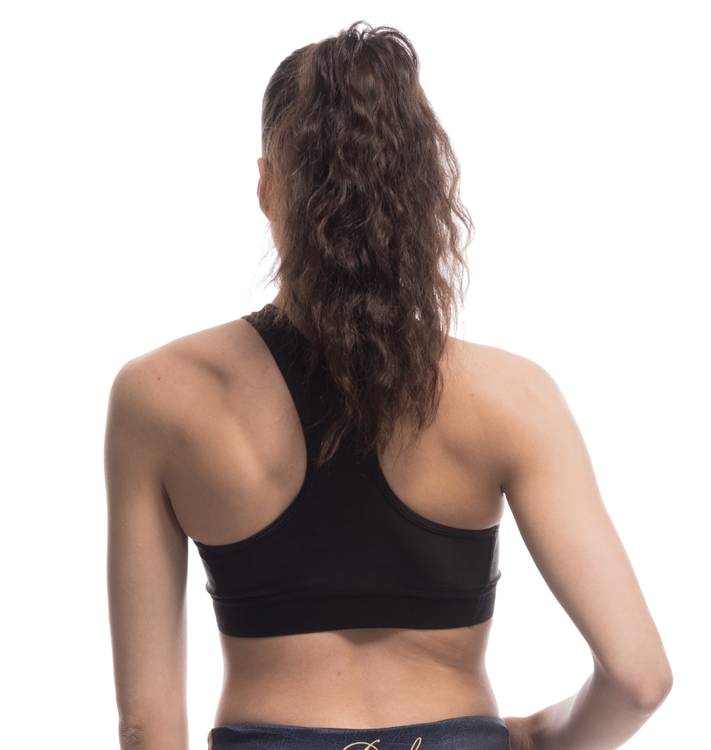 Musta urheilutoppi diskreeteillä graffoilla, 100% Polyesteria ja taattua ruotsalaista laatua!