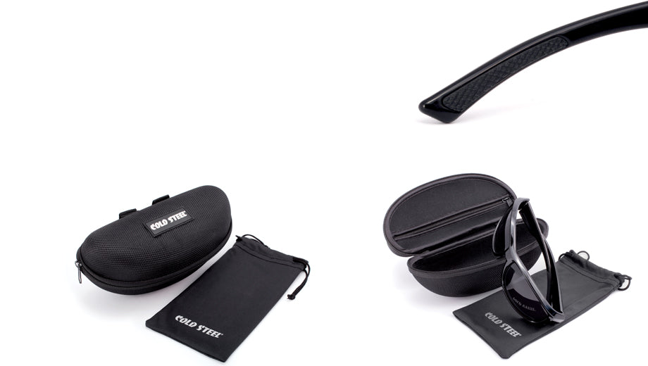 Tunnettuun Cold Steel-laatuun valmistetut tyylikkäät aurinkolasit, moneen käyttötarkoitukseen; pelastustehtäviin, ajamiseen, ammuntaan tai arkikäyttöön.