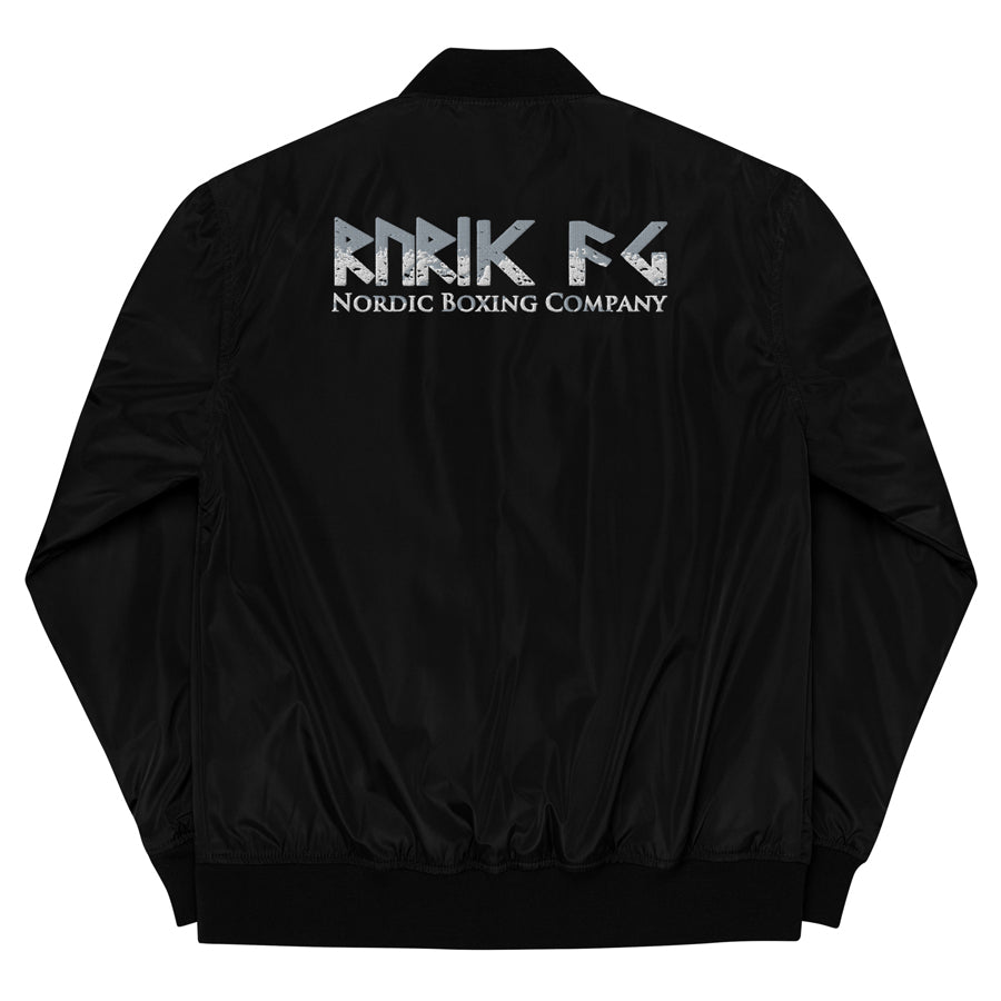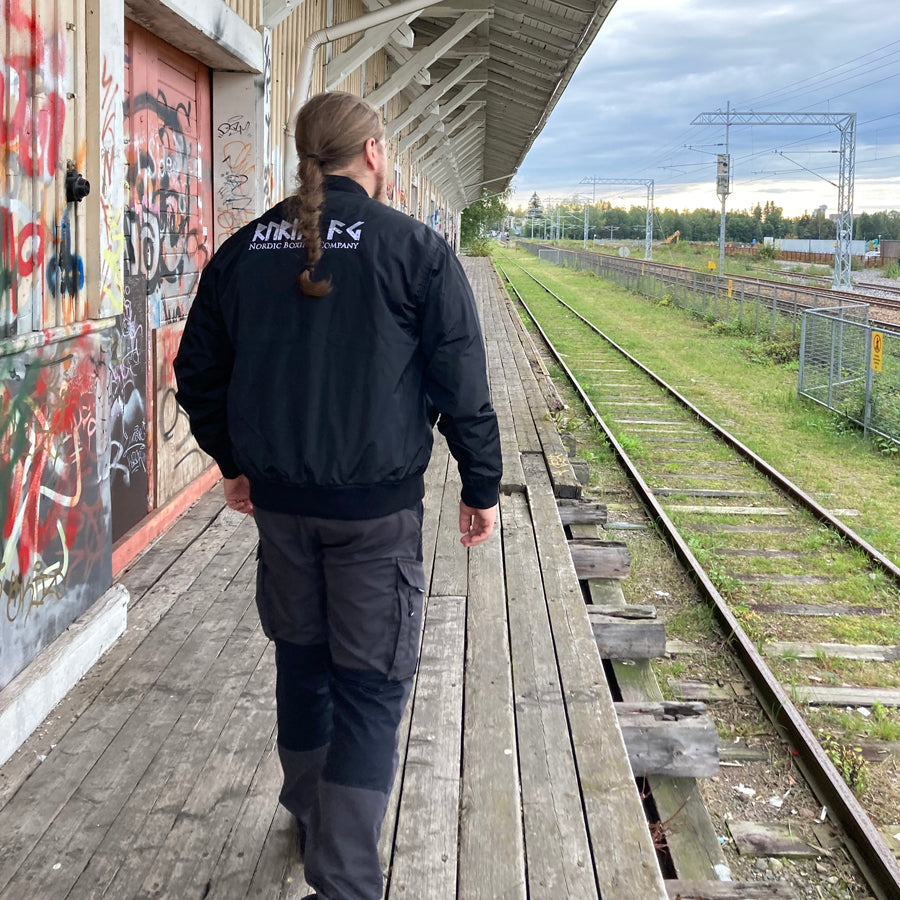 Rurik FG "R" -logo rintapielessä sekä riimulogo selässä monivärisesti brodeerattuna.