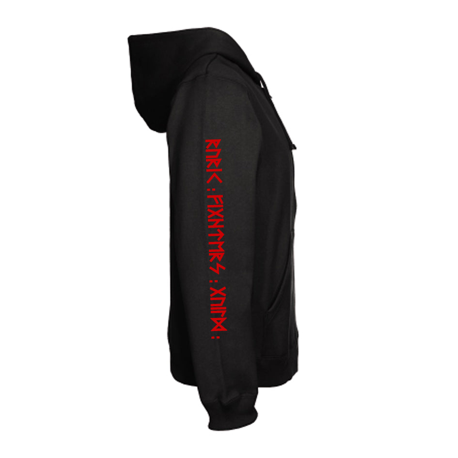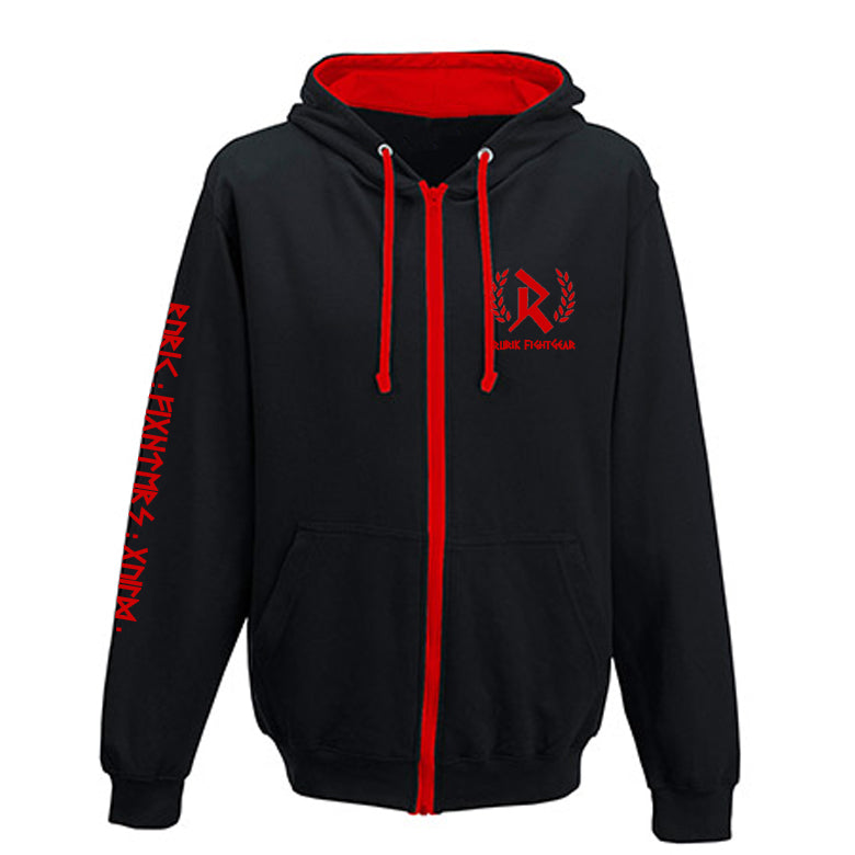 Tyylikäs vetoketjullinen, takkimainen puna-musta tiimihuppari. Sopii erinomaisesti niin kadulle kuin esim. salille lämmittelyyn. Hihansuissa & helmassa resorit. Materiaali on 20% polyesteria 80% puuvillaa joten pieni tihku ei juuri haittaa ja vaate pysyy mukavana pitää yllä. Kaksi pussimaista etutaskua. Kangastiheys 280 GSM.