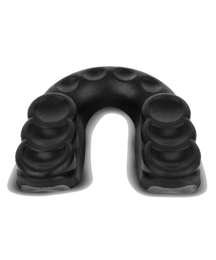 Alempi kumikehys vaimentaa iskuja ja jakaa voiman tasaisesti, suojaten tehokkaasti hampaitasi kovimmissakin kontakteissa. Lisäksi edistyksellinen muotoilu varmistaa optimaalisen hengityksen, jotta voit keskittyä täysillä suoritukseesi.